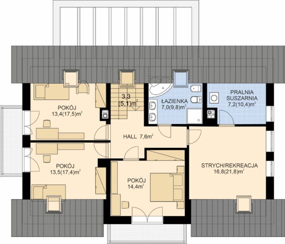 - Strych/Pokój 16,8m2 (21,8m2)